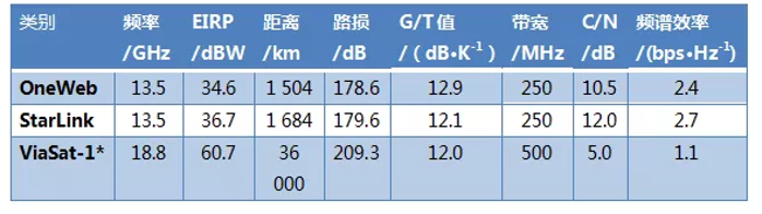 低轨卫星至地面用户的传输距离远小于GEO-HTS,在路径损耗方面具备约30 dB的优势(如表6)。但GEO-HTS采用的大卫星平台支持更大的发射功率,可以部分弥补其路径损耗。例如,ViaSat-1卫星的等效全向辐射功率(EIRP)比StarLink卫星高24 dB,在采用增益与系统噪声温度比(G/T)值同为12 dB/K左右的用户终端时,ViaSat-1用户接收机的载波噪声比(C/N)比StarLink低7 dB,因此,其频谱效率更低。换言之,低轨卫星在地表的信号强度比GEO-HTS约高7 dB,若要实现相同的频谱效率,其用户终端天线孔径约为GEO-HTS的一半。表 6 低轨星座和GEO-HTS用户下行链路预算注:未查到ViaSat-3卫星的链路预算资料,用ViaSat-1卫星的进行估计。